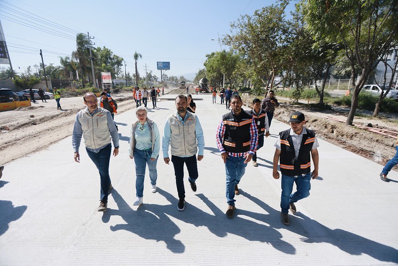 Por su parte, el director general de Obras Públicas, Celso de Jesús Álvarez Hernández, informó que el tramo en intervención comprende 1.7 kilómetros, desde las vías del tren hasta el límite con Tlaquepaque, y que además de la línea pluvial ya concluida, se han colado cerca de 700 metros de pavimento con concreto hidráulico.
