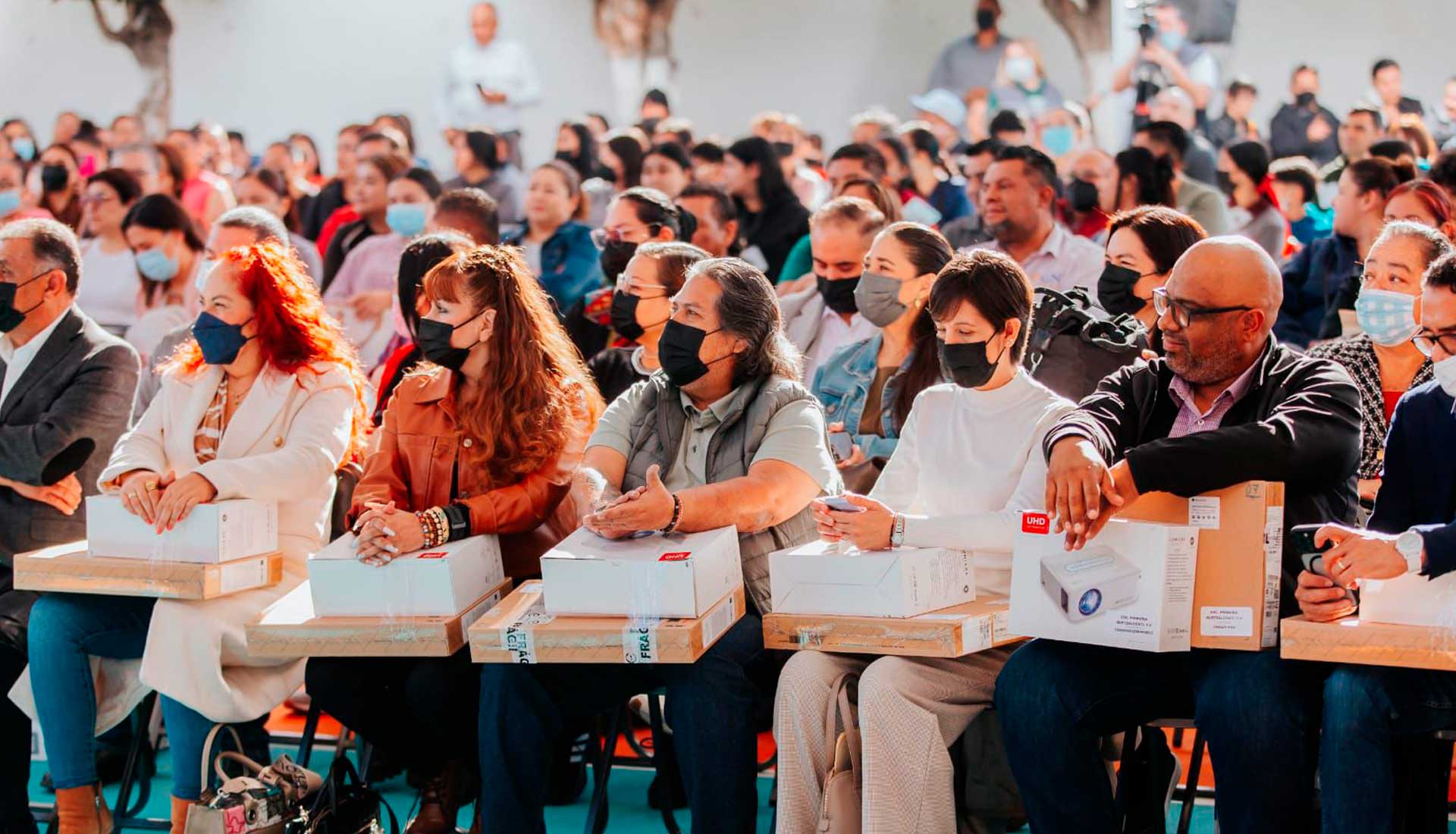 Entre los apoyos destacan cámaras de videovigilancia, proyectores, laptops, lonarias, mochilas, útiles y uniformes escolares.