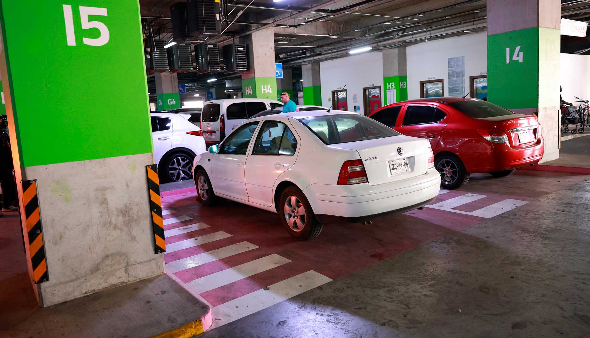 En el estacionamiento, los cajones rosas cuentan con dimensiones mayores a las de uno convencional para facilitar el descenso de menores de edad y el manejo de carriolas. Mientras un cajón estándar mide aproximadamente tres metros de ancho por cuatro o cinco metros de largo. Los nuevos espacios tienen 3.70 metros de ancho por cuatro metros de largo, lo que permite mayor movilidad y seguridad al momento de descender del vehículo.